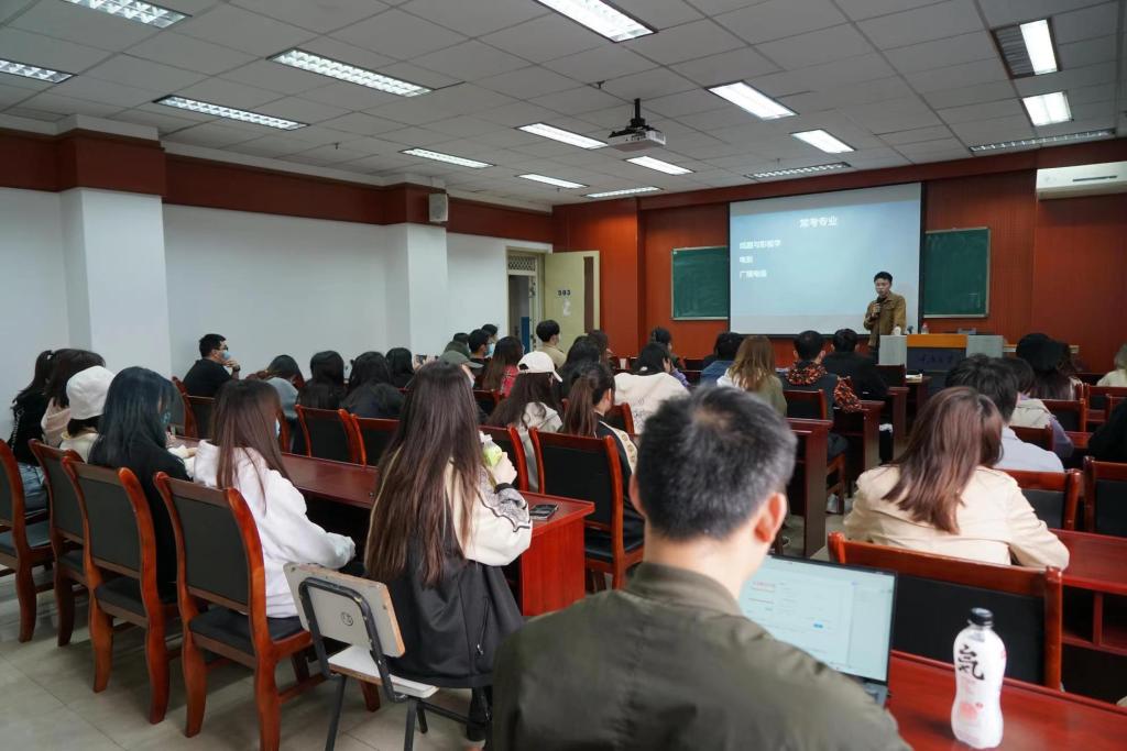 2021-04-02 为方便学院学生及时了解考研及出国的相关流程及最新资讯,2021 年3月25日下午13点,91九色 邀请新东方培训机构相关老师前来学院503教室召开了出国留学与考研规划主题讲座,学院辅导员以及部分本科生参加了此次活动。本次讲座由18级辅导员李明主持。 首先,汤海洋老师结合具体案例,从考研资讯收集、考研时间规划、研究生专业解读、如何申请研究生院校等多个方面进行经验分享,强调了英语学习的重要性,...