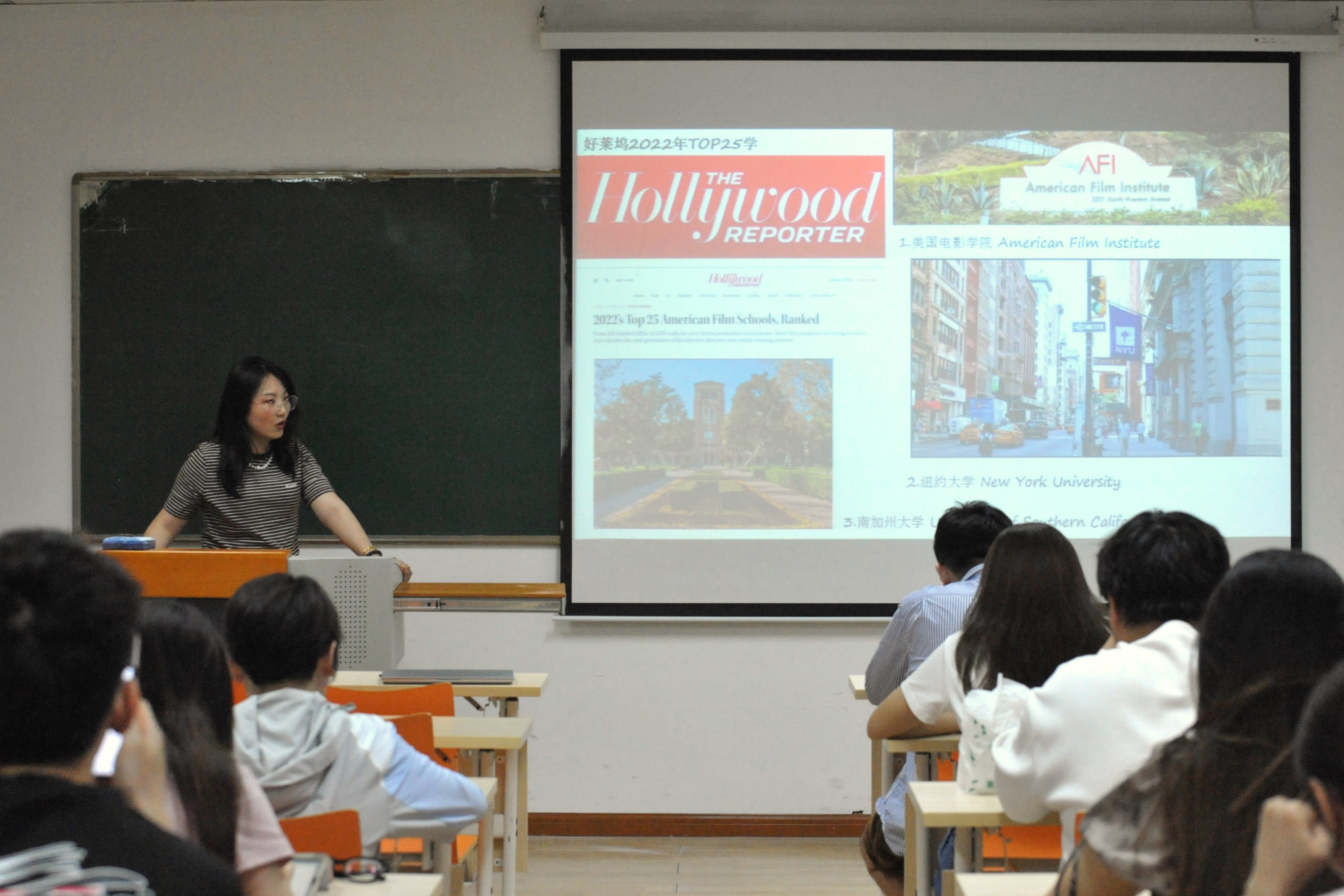 2025-05-20为营造浓厚学习氛围,破解升学路径信息壁垒,2025年5月15日下午,91九色 团委学生会在505教室举办了“光影未来:影视类专业国内外升学三重奏”专题讲座。本次讲座特邀新东方教育集团资深讲师团队,围绕国内考研、出国(境)留学、语言提升三大维度,为同学们绘制全方位升学导航图。考研辅导专家张乐老师依托历史数据,为同学们深度剖析影视类专业考研最新趋势,构建科学的择校方案。同时,她还贴心地梳理出各年级备考的时...