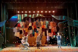 话剧《红色的天空》讲述了人老年老化以及生命末端的种种情境。其编剧手法比较接近诗或音乐的原理,而非传统的戏剧架构。整个故事讲述了八位老人从离家进入养老院,到慢慢来到“路的尽头”。但故事本身并不只是单纯的表现养老院里老人们的生存状态以及他们的孤独心态。整部话剧中涵盖了很多元的内容,对老人的关怀,对家乡、对爱人的怀念,对原生家庭的探讨,但当中体现最多的还是对生命的关怀与思考。