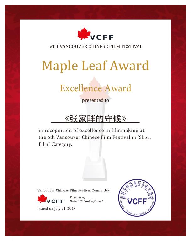 该片从来自世界各地的568部报名影片中脱颖而出,成功入围第六届温哥华国际华语电影节总共100部参赛片名单。经过评委会严格评选,最终,《张家畔的守候》凭借独特的题材、绝美的画面、和深刻隽永的故事内核获得评委青睐,斩获了第六届温哥华国际华语电影节“红枫叶奖”剧情片单元优秀作品奖。