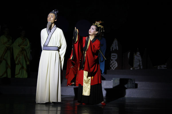 09级表演三班实习剧目《春秋魂》的演出已于6月4日和5日结束。此次教学实践打破了传统的实习剧目教学模式,尝试着师生同台和跨专业学生同台共演的教学模式,在教学创新的角度上大有突破,最后取得了满意的效果。本次实习剧目的排演和汇报都凝聚了09级全体师生的辛勤汗水与心血。