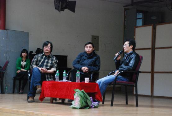 杨尚鸿院长首先发言,对魏德圣导演执导的两部主要影片《海角七号》和《赛德克·巴莱》做了简要介绍。《海角七海》是唯一入围第84届奥斯卡金像奖的国语片,魏德圣导演2008年因执导本片获得5.3亿新台币的票房,成为台湾本土最受欢迎的导演,《海角七海》成为台湾电影近年来走出低谷的一部标志性作品。然而,《海角七号》对魏导来说,仅仅是冰山一角,《赛德克·巴莱》才是海平面下巨大的冰山,魏导为此电影准备了十二年,早在2000年魏导就完成了讲述“雾社事件”始末的剧本《赛德克·巴莱》,获得当年优秀剧本奖。杨尚鸿院长说“魏导的新作《赛德克·巴莱》很了不起,从我们事先看了关于此片的拍摄过程的纪录片《未尽之路》可以感受到,魏导代表了台湾新一代电影人的精神,他们用年轻的心灵去主动触摸厚重的历史,担当再造台湾电影奇迹的使命,这对我们学习电影专业的同学来说,无疑是很好的榜样。”