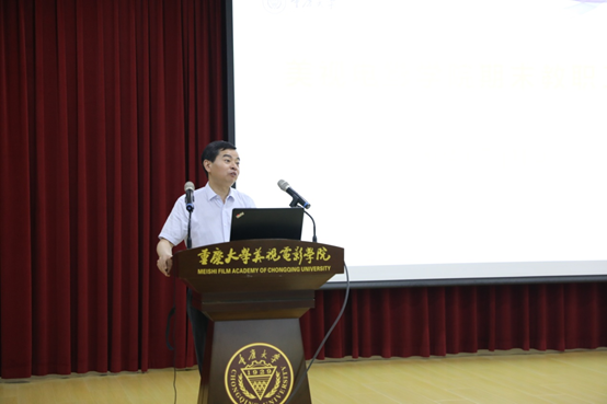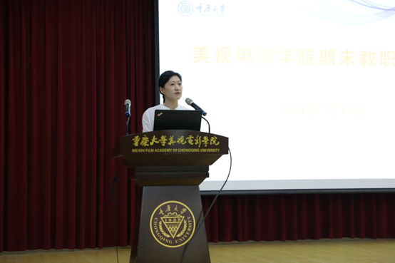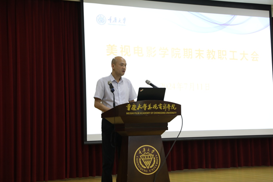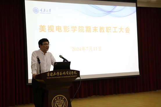 首先,常务副院长范蓓向全体教职工这一学期的努力工作和辛勤付出表达了感谢,并从教育教学、科研创作、队伍建设、交流合作、学生工作、管理服务等方面对2023-2024学年度的主要工作情况进行了总结,对学院2024-2026年关键任务指标进行了剖析,并提出工作思路和要求。学院将组织团队,整合力量,发动资源,结合学院发展需求,全力推进关键指标任务的落地落实和完成。