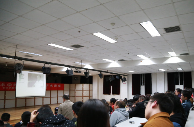 阶梯教室座无虚席,在场听众被曹意强教授充满智慧的精彩演说深深吸引。