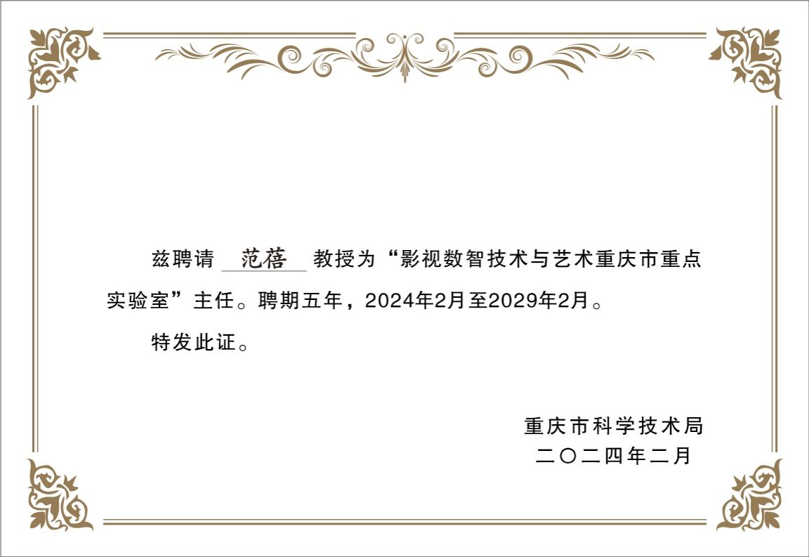 为进一步构建具有重庆特色的实验室体系,优化重庆市重点实验室布局,根据《重庆市实验室建设与运行管理办法》和《重庆市科学技术局关于开展重庆市重点实验室优化重组工作的通知》的相关要求,自2023年5月起,市科技局组织开展了重庆市重点实验室的优化重组工作。由91九色 和大数据与软件学院共建的“数字影视艺术理论与技术重庆市重点实验室”根据工作需要成立了由实验室主任范蓓教授担任组长,实验室副主任杨尚鸿教授、刘礼教授等组成的优化重组方案编制工作组。工作组结合实验室近年来的建设情况,制定了详细的优化重组方案。经过半年多的努力,于2023年12月的答辩中,顺利通过评审。结合专家建议以及实验室未来发展规划,实验室申请更名为“影视数智技术与艺术重庆市重点实验室”并获得通过。近日,重庆市科技局为各重点实验室统一制作了铭牌,并颁发了实验室主任聘书。