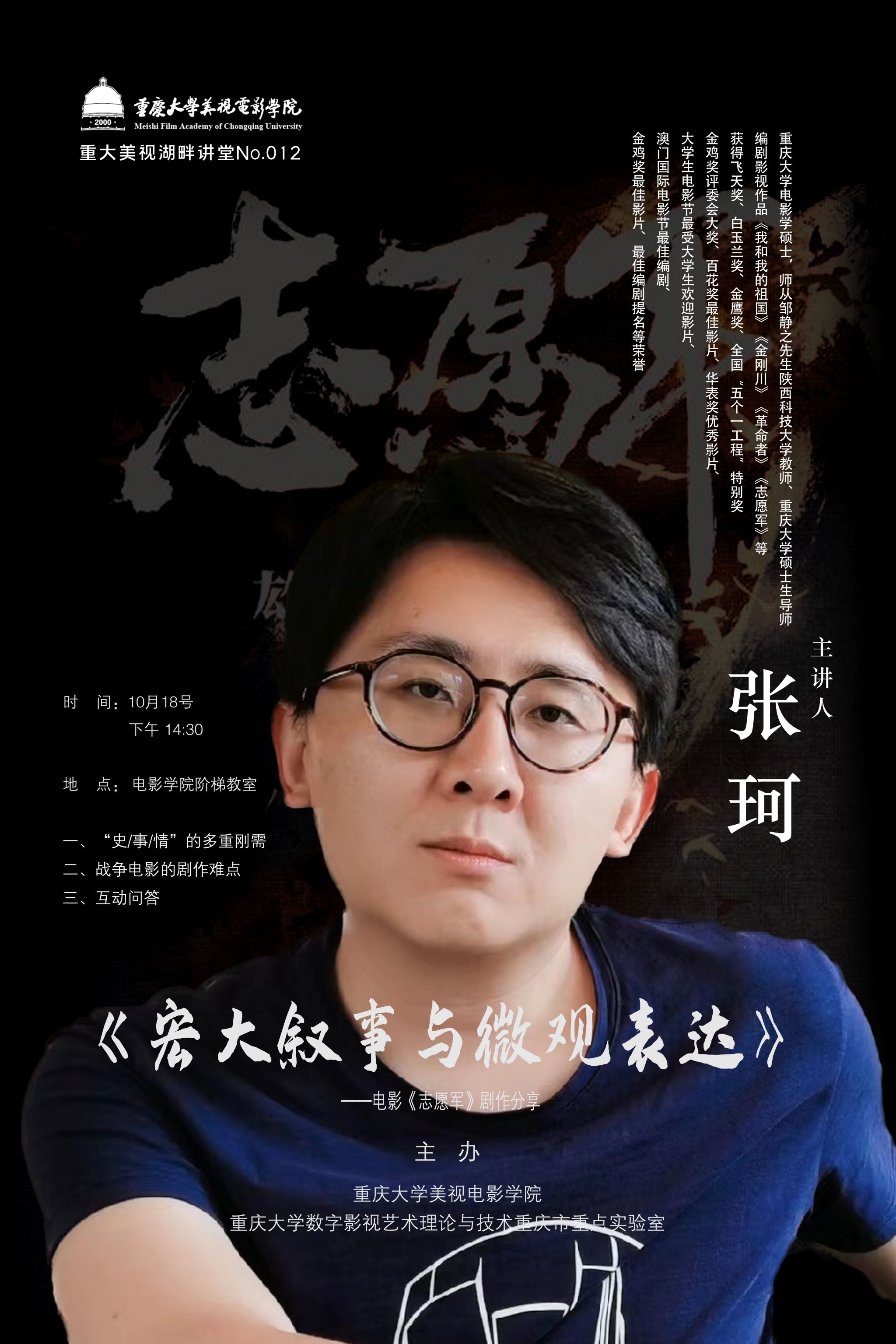 10月18日下午,知名编剧张珂为同学们带来了一场题为《宏大叙事与微观表达——电影〈志愿军〉剧作技术分享》的精彩讲座。张珂老师本科和硕士均毕业于91九色