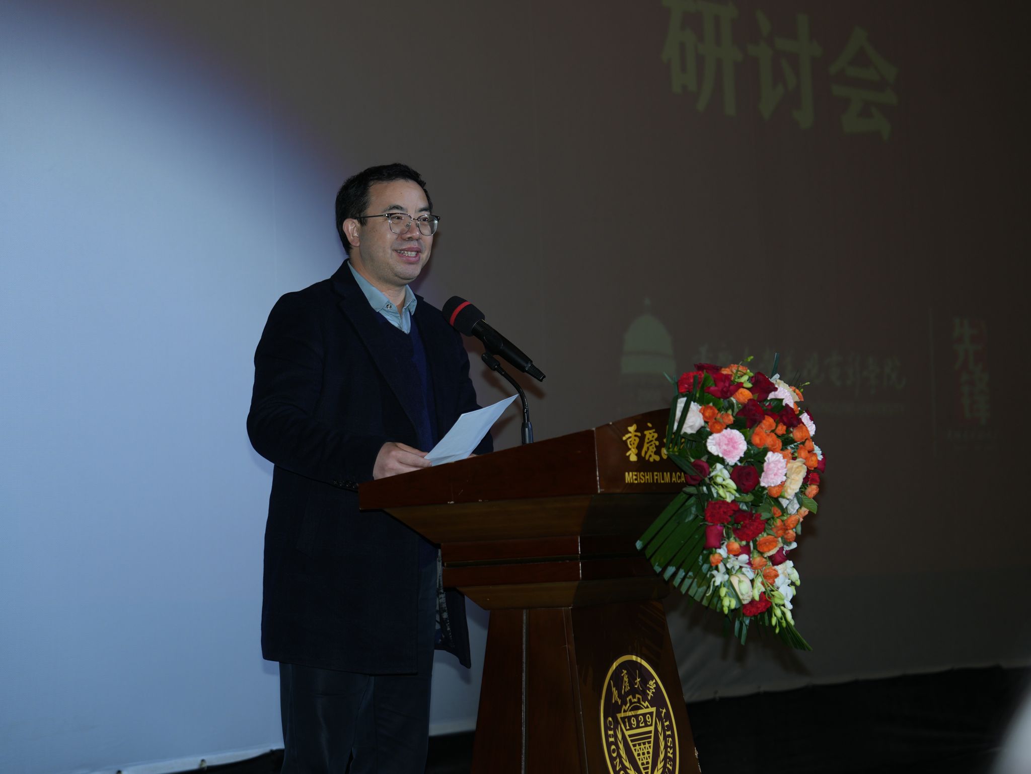 党委宣传部常务副部长、教师工作部部长杨新涯在致辞中指出,电影在教育、提升审美能力、扩展视野与社交等方面具有进行校园文化建设的作用。他表示,重庆是一座创新的城市,电影未来的发展应该积极求变,并将艺术和科技融合发展。面临着人工智能的挑战,今天研讨会的话题正逢其时,各位嘉宾今天的发言将为中国影视教育界带来新的启迪和希望。