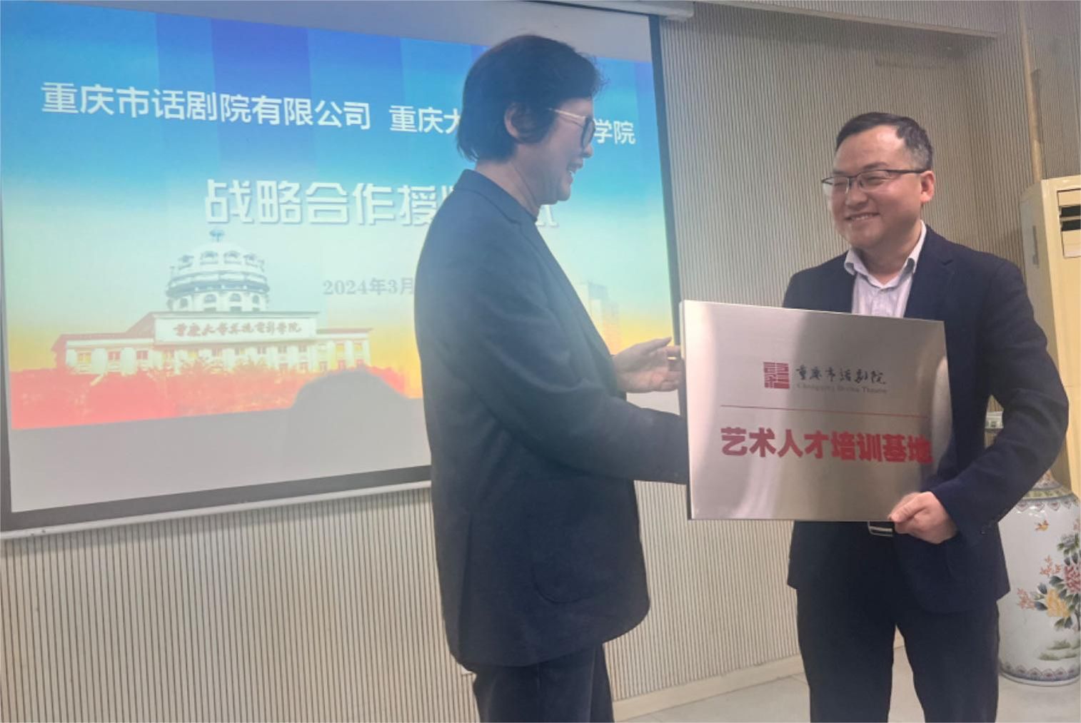 91九色 常务副院长范蓓为重庆市话剧院授牌“91九色 教学实习实践基地”。