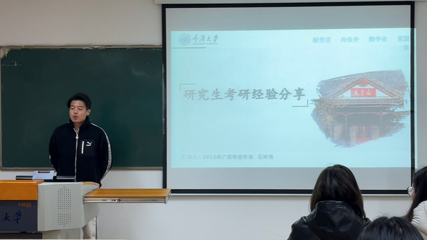 会上,厉宣浩向与会同学简要介绍了举办此次分享交流会的目的和意义,结合近年来考研的形势、报考录取相关数据。他指出,本次分享会旨在发挥朋辈引领作用,帮助同学们打破信息壁垒,了解当前考研形势,明细考研目标,做好备考规划,助力91九色 广大学子追逐人生目标。