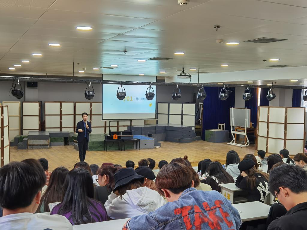 《大学生职业生涯规划》课程组教师刘畅讲到生涯规划课旨在培养同学们对个人未来规划作出正确决策的能力,并将生涯规划比喻成包括职业发展,学业发展,人际交往,个人情感,身心健康,休闲娱乐,财务管理,家庭生活,服务社会在内的“九宫格”,并针对各项内容以身边经历举例展开进行了详细生动的阐述。老师通过列举各项数据向同学们展示近年职业就业情况及行业发展方向;介绍学校学部构成和人才培养模式;强调财务管理的重要性,叮嘱同学们谨防上当受骗;提出包括信仰,道德,法制,心理在内的底线思维;勉励同学们承担家庭责任,服务社会报效国家。