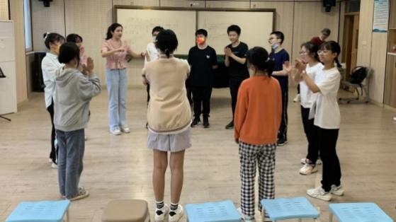 表演课上,同学们在研究生志愿者的带领下以训练注意力的小游戏作为开场,接着又进行了“听音解锁”和“物品传递”两项表演训练内容。训练过程中,同学们对这种新颖的上课方式表现出极大的兴趣,全都积极的参与到课程互动中来,在实践中相互配合,高质量的完成了所有训练内容,自身的想象力、表现力、思考力和适应力也都得到了充分锻炼。